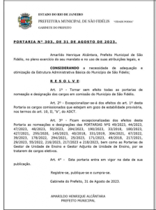 A Prefeitura de São Fidélis, no Norte Fluminense, demitiu funcionários que exerciam comissionados ou função gratificada. A decisão foi publicada no Diário Oficial da