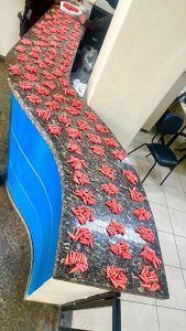 No local os agentes se depararam com um estabelecimento em operação sem condições higiênico-sanitárias mínimas de funcionamento, com obra inacabada, fiação elétrica exposta, facas