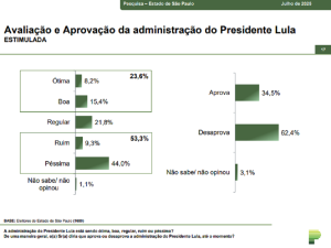 Cerca de 53,3% dos entrevistados classificaram a gestão como ruim ou péssima e 23,6% nomearam como boa ou ótima; levantamento contou com 1680 eleitores