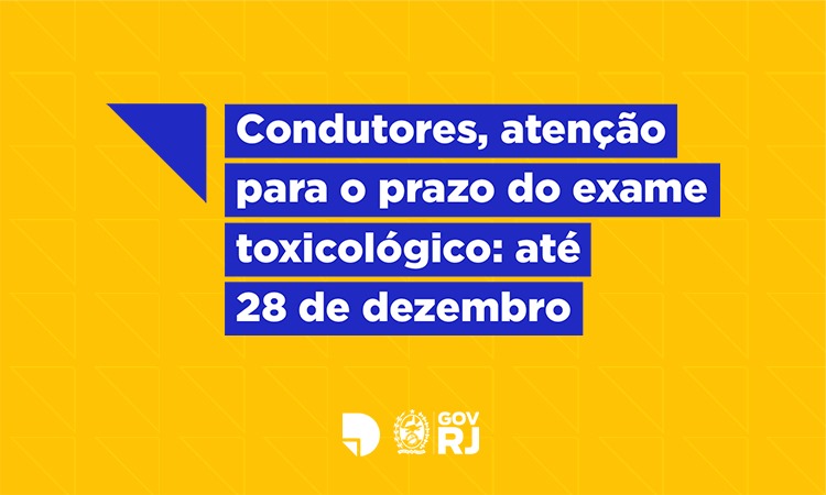 O Detran.RJ informa que os condutores habilitados nas categorias C, D e E têm até 28 de dezembro de 2023 para fazer o exame toxicológico, mesmo que não estejam exercendo atividade remunerada. O prazo foi estabelecido pela Resolução nº 1002/2023, do Conselho Nacional de Trânsito (Contran).