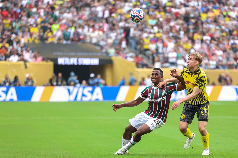 O Fluminense estreou hoje no Mundial de Clubes da Fifa contra o alemão Borussia Dortmund. Os europeus, que terminaram o campeonato nacional na quarta colocação e caiu nas quartas de final da Liga dos Campeões para o forte Barcelona, chegavam como franco favoritos contra o Tricolor das Laranjeiras. Porém, o time brasileiro mostrou sua força e acabou saindo com um empate injusto, pois merecia a vitória. A primeira grande chance do jogo foi para o Fluminense, após arrancada de John Arias pelo lado direito. O chute passou por cima da trave. O time carioca chegou de novo aos cinco minutos de jogo. Aos poucos, alemães foram chegando ao ataque, com um lançamento para Julian Brandt e depois cruzamento para Guirassy, ambos cortados pela defesa, que vinha fazendo um bom trabalho em manter o ataque de Dortmund.