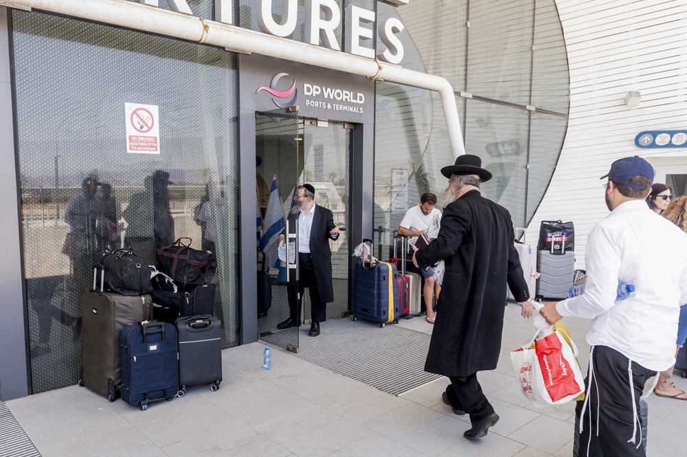 Passageiros israelenses se preparam para deixar o Porto de Limassol rumo a Israel