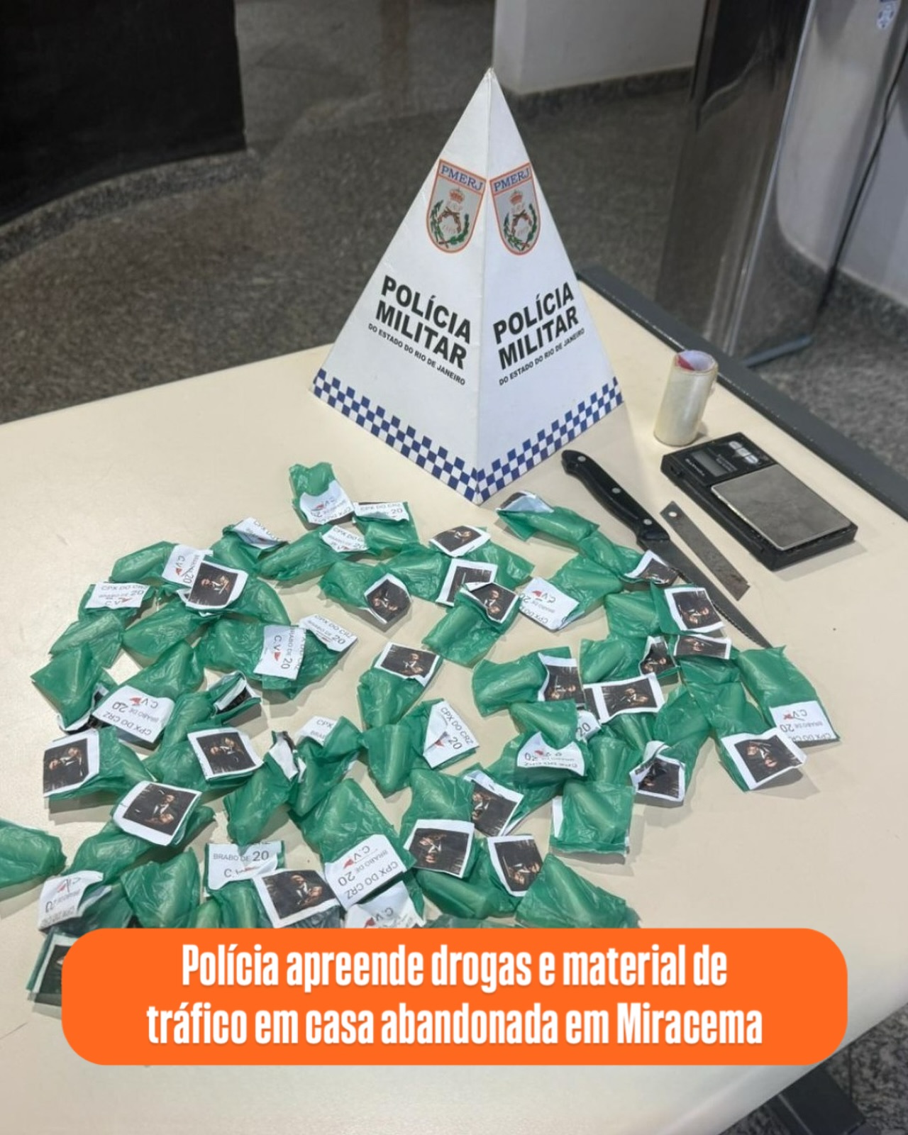 Polícia apreende drogas e material de tráfico em casa abandonada em Miracema