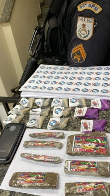 Após buscas no local, as equipes lograram êxito em apreender 07 tabletes de maconha, 13 pinos de cocaína, 01 pedra de crack, 01 aparelho celular e 64 folhas com a descrição CPX7BK. A ocorrência foi apresentada na 136ª DP do município.